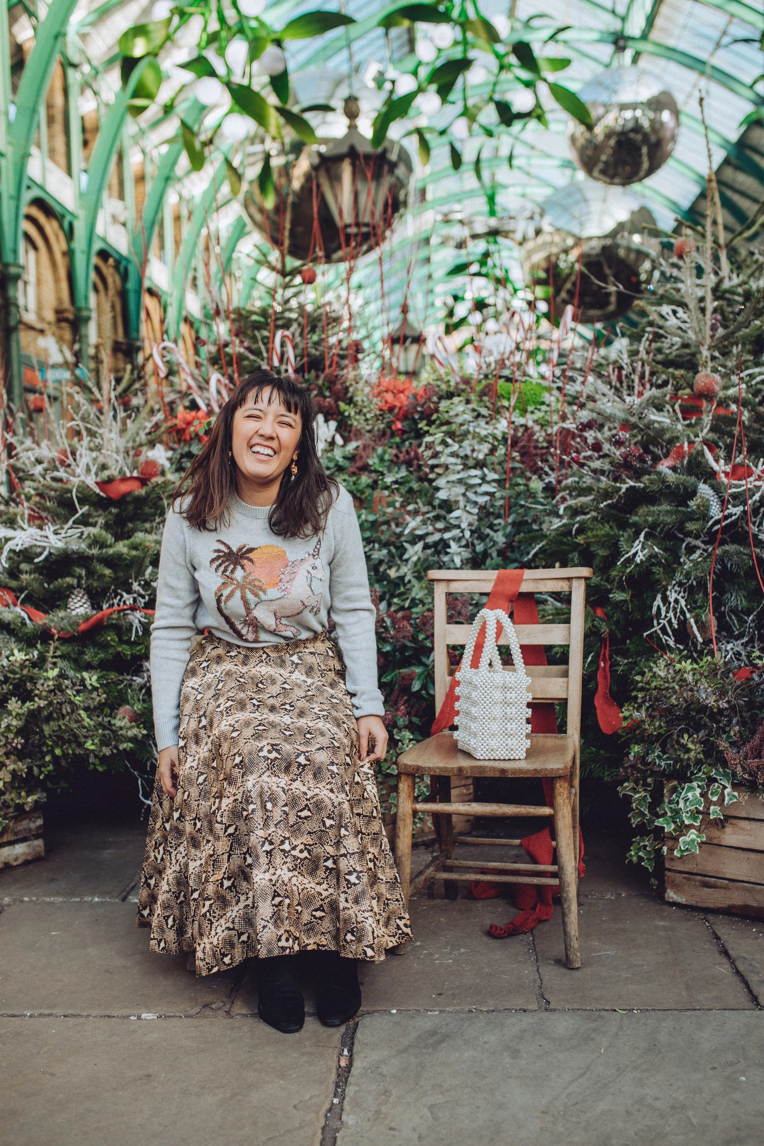 When it comes to snake print trousers, skirts or bottoms of some kind, I love pairing mine with a cosy sweater. Since this midi skirt is pretty bulky, I went for this unicorn one that’s better fitted - although it has a big print on it, the colours are quite muted so I felt like it kept the outfit from straying into tacky territory.